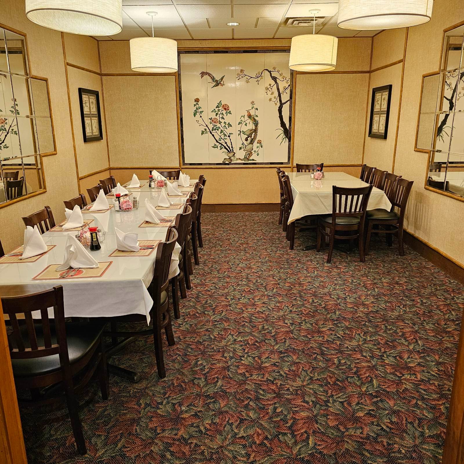For smaller gatherings, our small party room offers a more intimate setting capable of accommodating up to 20 guests. Reservations for this room are taken for groups of at least 10 or more.